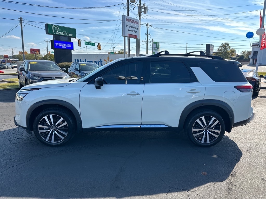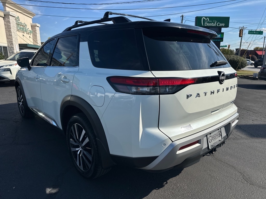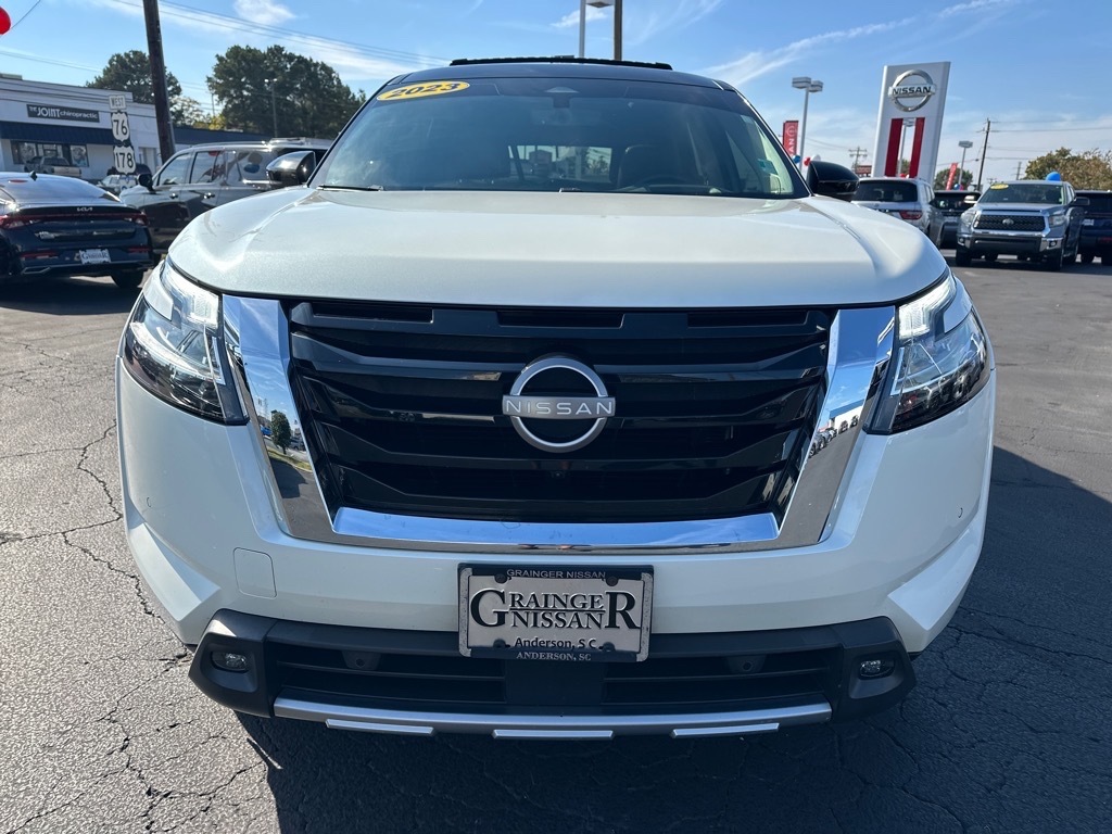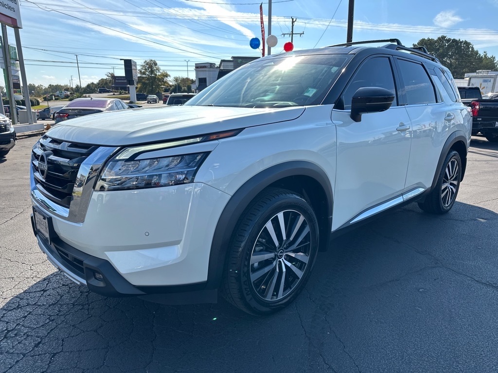 Heated Leather Seats, 3rd Row Seat, Navigation, Sunroof, Power Liftgate, 4x4, Captains Chairs, Panoramic Roof, Trailer Hitch READ MORE!KEY FEATURES INCLUDELeather Seats, Navigation, Sunroof, Panoramic Roof, 4x4, Power Liftgate, Rear Air, Heated Driver Seat, Heated Rear Seat, Cooled Driver Seat, Back-Up Camera, Premium Sound System, Satellite Radio, iPod/MP3 Input, Onboard Communications System. Rear Spoiler, MP3 Player, Keyless Entry, Privacy Glass, Remote Trunk Release. OPTION PACKAGESPLATINUM CAPTAIN CHAIRS PACKAGE 2nd-Row Captain Chairs, 2nd-Row Removable Center Console, CROSS BARS, LED FOG LAMPS. Nissan Platinum with Pearl White Tricoat/Super Black exterior and Chestnut interior features a V6 Cylinder Engine with 284 HP at 6400 RPM*. PRICED TO MOVEThis Pathfinder is priced $1,700 below J.D. Power Retail. All prices include $499 dealer documentation fee. Pricing analysis performed on 10/13/2025. Horsepower calculations based on trim engine configuration. Please confirm the accuracy of the included equipment by calling us prior to purchase.