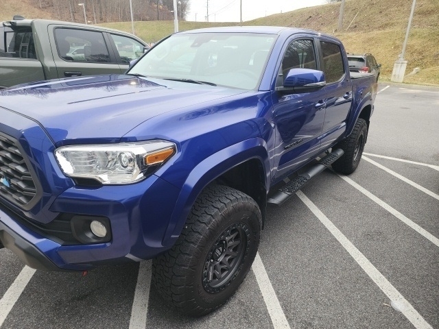 Clean CARFAX. CARFAX One-Owner.INFORMATION ABOUT THIS VEHICLE AND ITS FEATURES:, 4WD. 2023 Toyota Tacoma V6 Blue 4WD 6-Speed 3.5L V6All advertised prices EXCLUDE optional equipment selected by the purchaser, dealer documentation fee of $799, and state/local taxes, tags, registration/title fees..4WD, 6 Speakers, ABS brakes, Air Conditioning, Alloy wheels, AM/FM radio: SiriusXM, Anti-whiplash front head restraints, Apple CarPlay/Android Auto, Auto High-beam Headlights, Auto-dimming Rear-View mirror, Automatic temperature control, Axle Ratio: 3.91, Black Headlamp Bezel, Body Color Overfenders, Brake assist, Bumpers: body-color, Charcoal Grille w/Chrome Surround, Color-Keyed Overfenders, Daytime Running Lamps, Driver door bin, Dual front impact airbags, Dual front side impact airbags, Electronic Stability Control, Emergency communication system: Safety Connect (1-year trial), Exterior Parking Camera Rear, Fabric Seat Trim, Front anti-roll bar, Front Bucket Seats, Front Center Armrest, Front Door Smart Key System w/Push Button Start, Front dual zone A/C, Front Fog & Driving Lamp, Front fog lights, Front reading lights, Front Seats, Front wheel independent suspension, Heated door mirrors, Illuminated entry, Knee airbag, Low tire pressure warning, Occupant sensing airbag, Outside temperature display, Overhead airbag, Overhead console, Panic alarm, Passenger door bin, Power door mirrors, Power driver seat, Power Sliding Rear Window w/Privacy Glass, Power steering, Power windows, Radio: Audio, Rear step bumper, Remote keyless entry, Speed control, Speed-sensing steering, Split folding rear seat, Steering wheel mounted audio controls, Tachometer, Telescoping steering wheel, Tilt steering wheel, Traction control, Trip computer, Variably intermittent wipers, and Wheels: 16 Dark Gray Alloy.